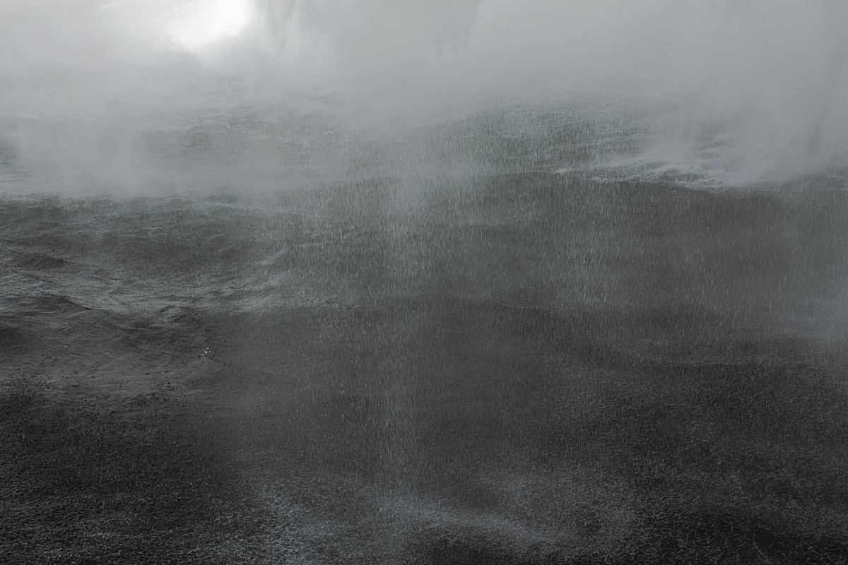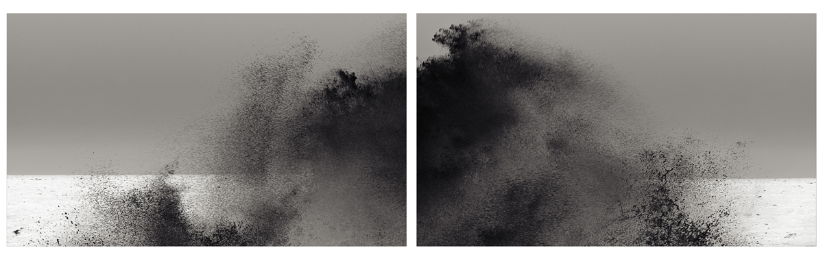 Sous l’eau aussi c’est terriblement beau ; dans le sillage de la planète qui plonge, une trombe en spirale faite de mouvements aqueux et de bulles s’élève. Alors que la terre coule et fouille les abimes, la tornade sous-marine rejoint lentement en surface les miasmes de l’éclaboussure aérienne. -