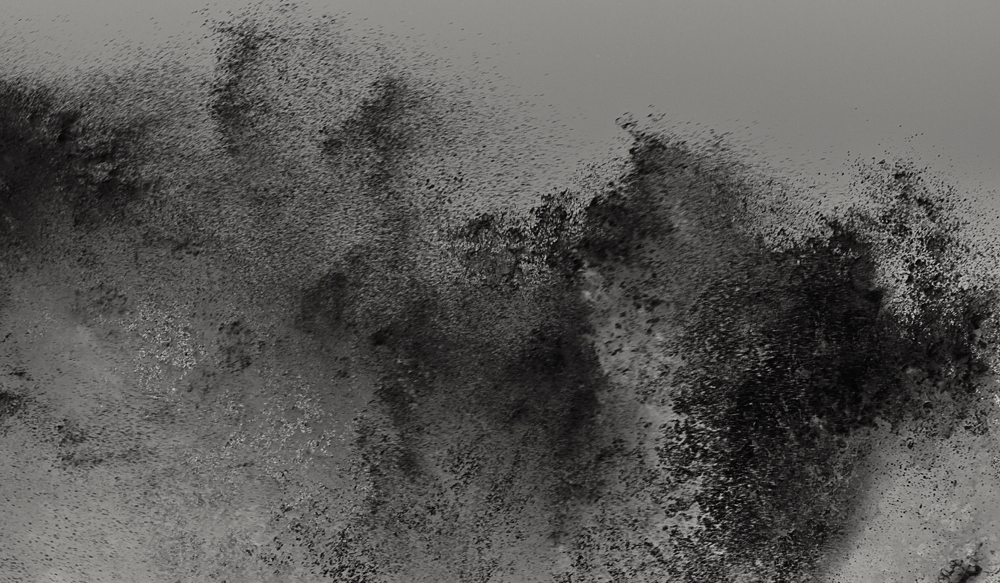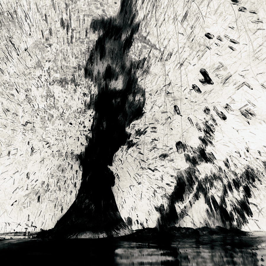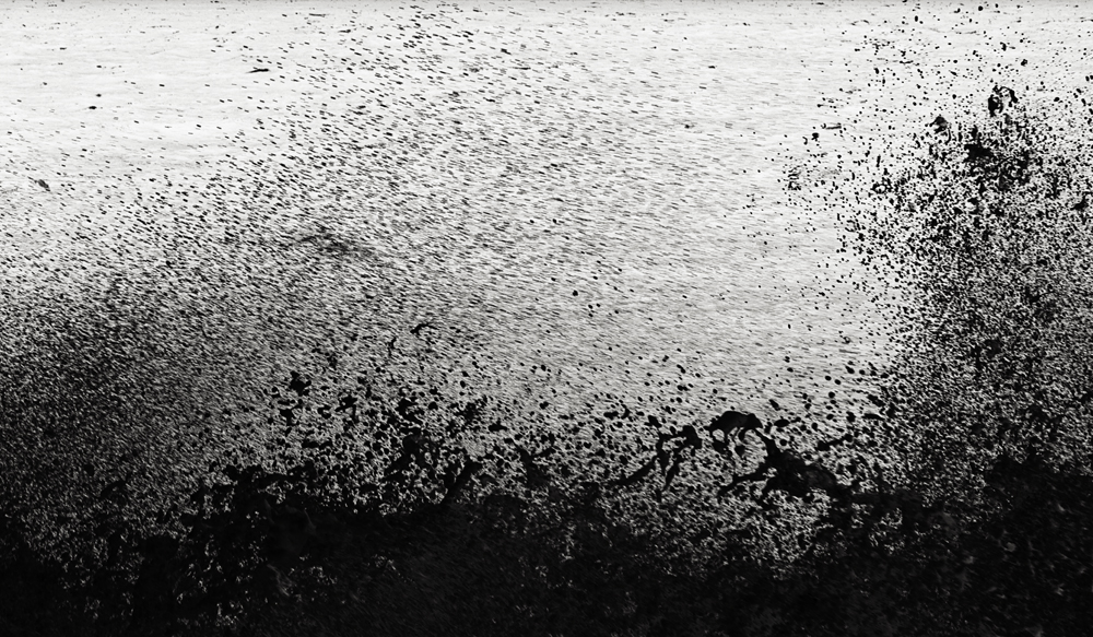 Les vagues circulaires accueillent et absorbent avec douceur et méthode les retombées de ce double cataclysme. La mer reconstitue sa peau d’origine où flottent quelques bulles-souvenir. Tout au fond, l’eau commence à caresser la terre, à la polir pour lui apprendre la politesse. Les courants la bercent et le plancton originel flaire déjà un site pour une nouvelle colonie.