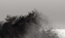 Une gigantesque et magnifique giclure s’élève vers le ciel ; une couronne de cristal liquide au diamètre de la planète. Elle s’évase, se distord, danse et monte lentement dans son orbe de gouttes et de lumière. À l’apogée de cette élévation libre démarre en surface l’onde infinie dans un bouillonnement d’écume et de sel, l’évasion des cercles concentriques, une œuvre mathématique. Les bourrelets d’eau s’épaississent et ralentissent dans leur chemin exponentiel vers une périphérie inconnue.