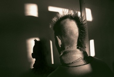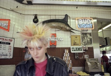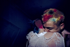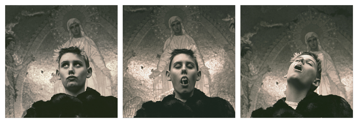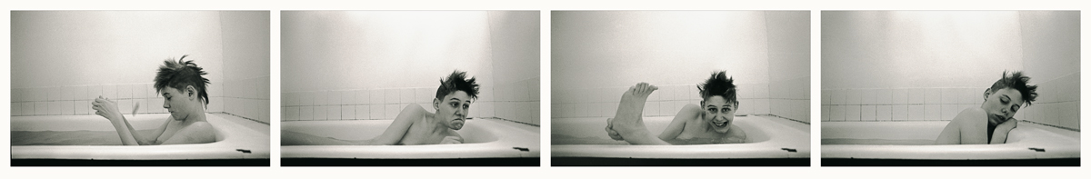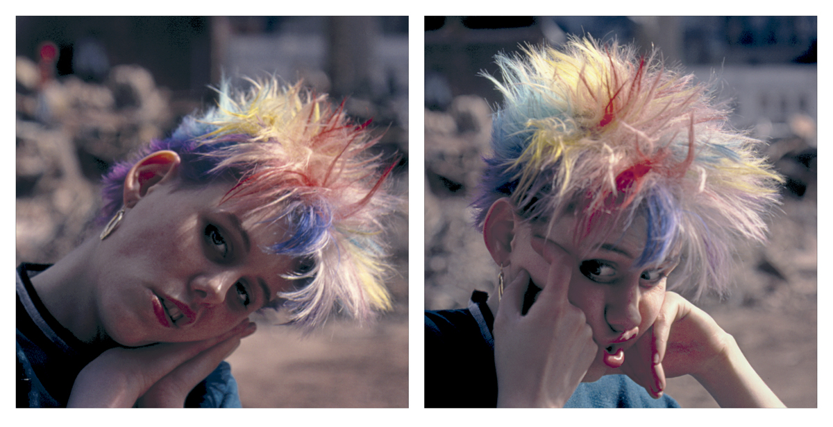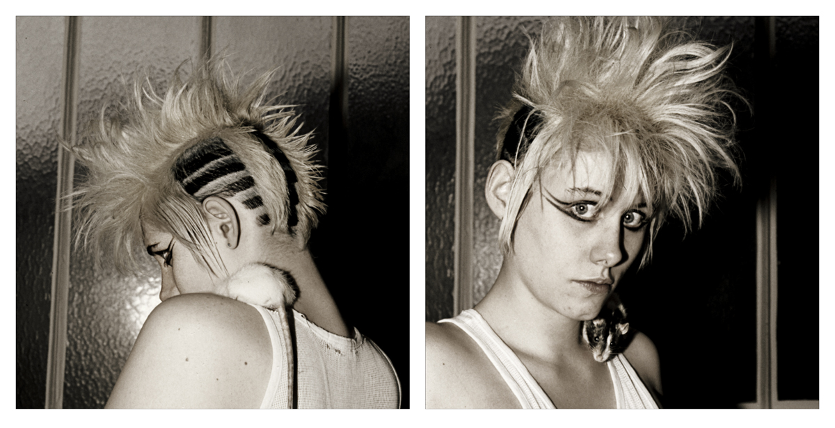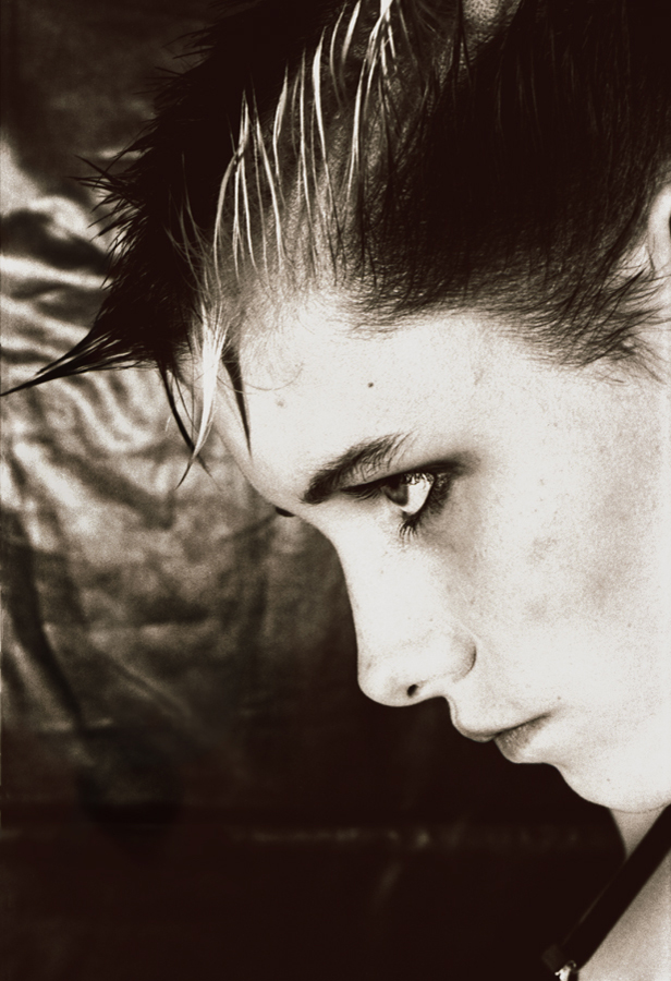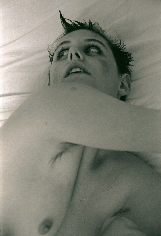 En Juin 1980, avec mon pote Laul, on a branché Nina à la sortie d'un concours aux Arts Décos parce qu'on la trouvait trop belle pour les autres. On lui a demandé si elle voulait être la chanteuse de notre groupe Lucrate Milk. Elle a dit oui, ta gueule, et de ce jour, elle ne m'a pas seulement crié dans les oreilles, on a tout partagé pendant deux ou trois ans. En ce temps là, à part le camembert, les câlins, la colle et la picole, notre nourriture quotidienne était de faire ou de voir du beau, ou tout au moins ce qu'on trouvait beau. Par exemple, il m'était impossible de pisser sans dessiner un animal fantasque sur un mur, une spirale dans la neige ou des oscillations lumineuses à la lumière d'un phare. On était très bêtes, moqueurs, fiers, provocateurs, défoncés, coquets, mais jamais méchants ou mauvais, et cette quête de beauté et d'extase nous a malmené vers des contrées heureuses et dangereuses, mais nous a protégé du pire (une grosse moitié de nos amis de l'époque en sont morts)... Mine de rien, cette période chaotique nous a appris qui nous étions et ce qu'on avait à faire dans cette vie là. C'est là que Nina a commencé la peinture et que j'ai découvert la musique, cette allusion physique aux indicibles émois de l'exaltation. Notre belle histoire d'amour s'est finie sauvagement mal, ce qui est bon signe. Aujourd'hui nous sommes amis, plein de respect l'un pour l'autre avec un beau regard tendre, amusé et sans aucune nostalgie sur ces années passées ensemble. Ces photos témoignent d'une petite partie de nos préoccupations intimes, les jours où mon appareil ne servait pas que à s'envoyer des coups de flash dans les rétines pour voir danser des belles couleurs sous les paupières...