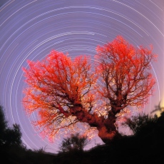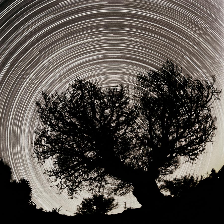 L’Arbre est guidé par ce tourbillon stellaire. Ses formes deviennent des mouvements généreux et son apparente immobilité est celle d’un centre qui fait tout bouger autour de lui. Un Arbre c’est aussi un lieu où évoluent planètes, âmes et bousiers.Quand Vénus surgit de l’orient, Je ferme l’obturateur et l’aube efface un monde.